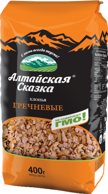 Состав: Хлопья гречневые. Масса Нетто: 400гр. Пищевая ценность в 100гр. продукта: Белок - 12,8; Жир - 3,4; Углеводы - 66,1. Энергетическая ценность в 100гр. продукта: 346 ккал. Не требуют варки.