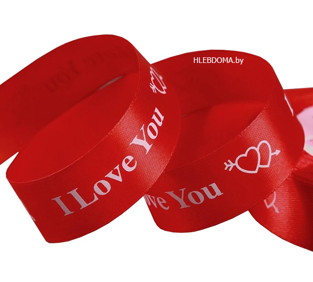 Лента атласная "Красная I love you" 25мм, 1м.
